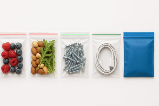 Отличный сценарий для zip-lock, особенно утолщённого. Важно выбирать толщину 80–100 мкм для острых кромок и тяжёлых изделий. Для электроники используйте антистатические пакеты — обычный прозрачный пакет не защищает от ESD.