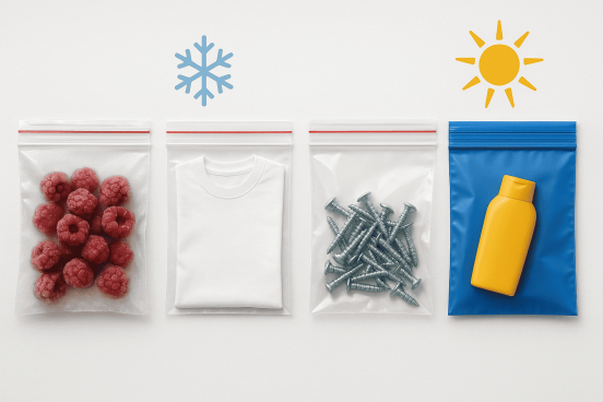 Вывод: классический zip-lock из LDPE/LLDPE — один из самых «морозоустойчивых» среди гибких плёнок массового сегмента, тогда как PP и жёсткие пластики быстрее теряют ударную вязкость при отрицательных температурах.