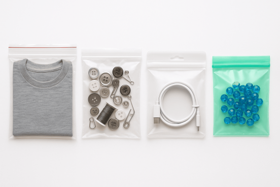 Число циклов. Возвраты, пересорт, контроль качества, комплектование наборов — всё это «убивает» замок. Частые циклы → слайдер или усиленный zip-lock + толще плёнка.